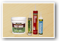 Latex, co-polymer and solvent based adhesives as well as silicone sealant.